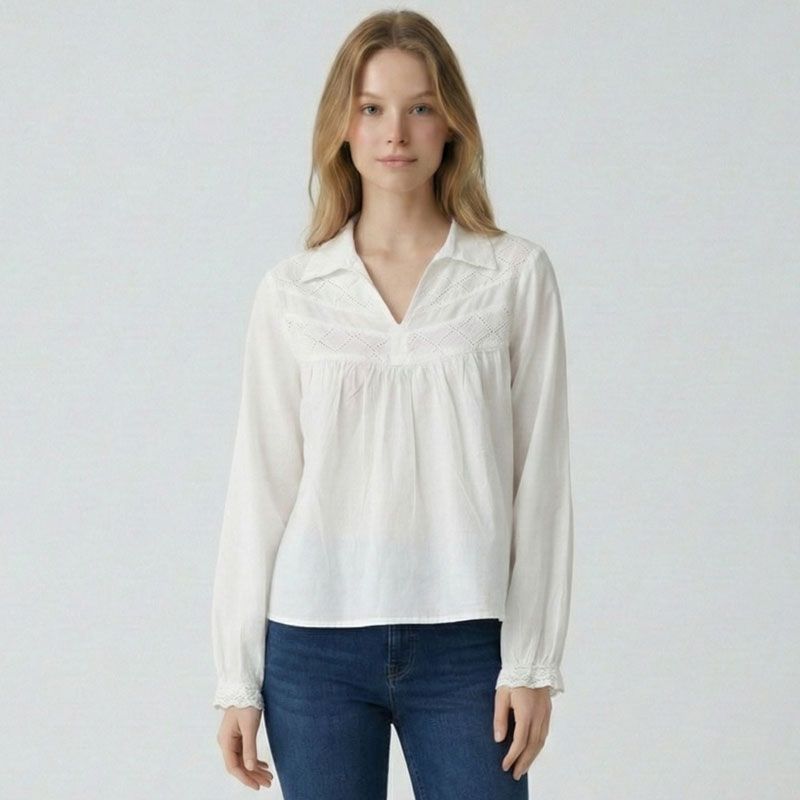 Blouse celeste col rond décolleté v poignets boutonnés Femme JDY