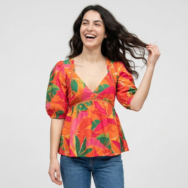 Blouse col v imprimé tropical bellona Femme LA PETITE ETOILE