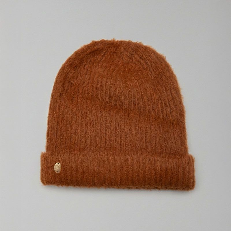Bonnet angora maille avec blason logo effet cuir Femme LULU CASTAGNETTE