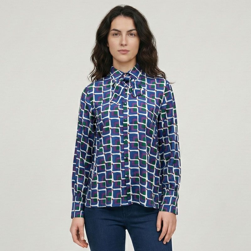 Chemise col avec ruban à nouer imprimé graphique malijai Femme LES TROPEZIENNES PAR M.BELARBI