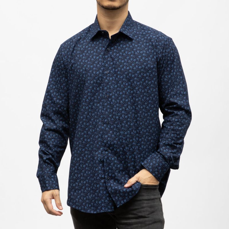 Bill00 chemise coton poly blanc motif fleurs bleues Homme BILL TORNADE
