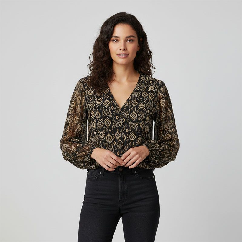 Chemisier noire imprimé éthnique beige paula Femme DEELUXE 74