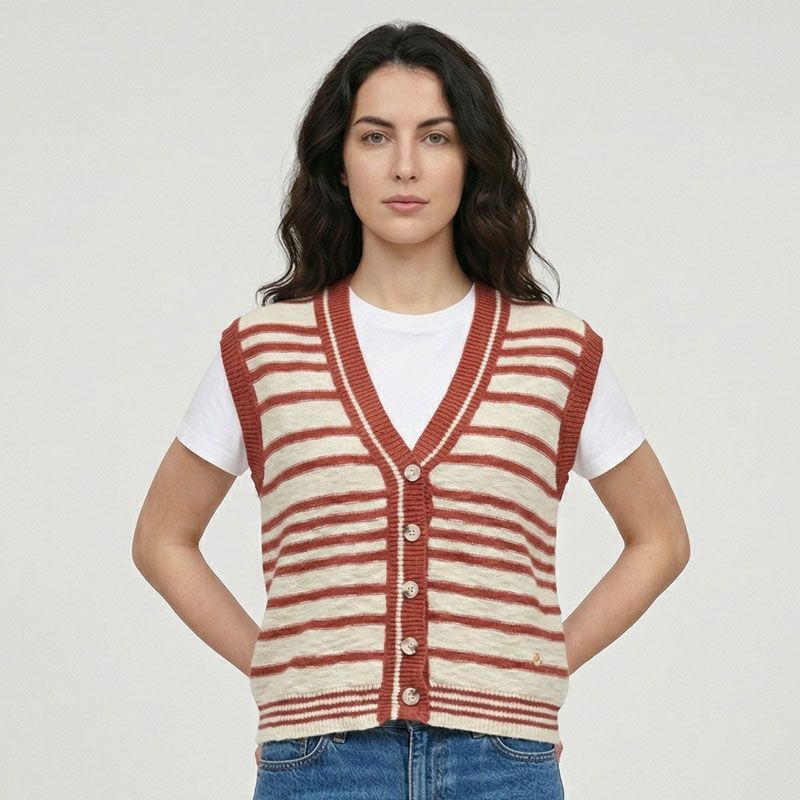 Gilet cotelé col V à boutons Femme LA PETITE ETOILE