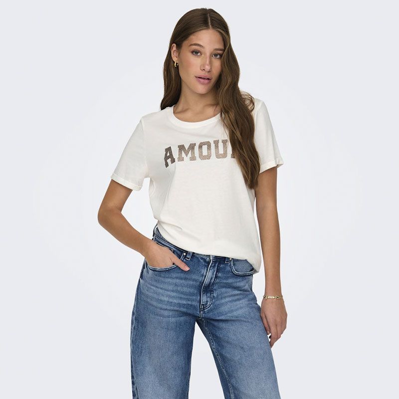 Tee shirt noomi coton col V avec coeur brodé Femme ONLY
