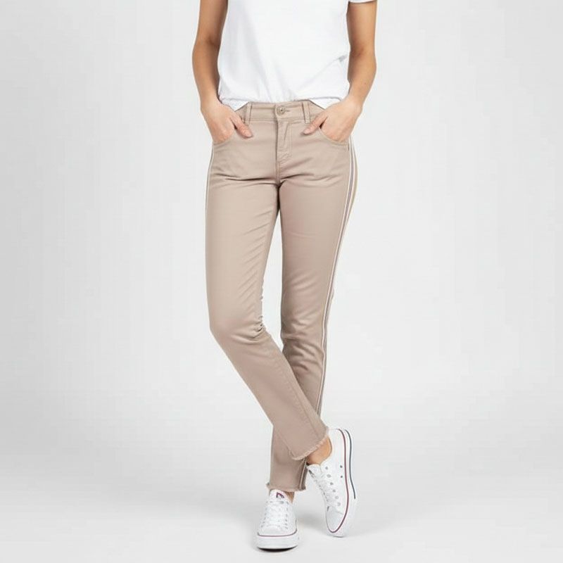 Dégriffstock vous propose ce pantalon slim brodé fantaisie beige pour femme de la marque HAPPY à prix dégriffé.