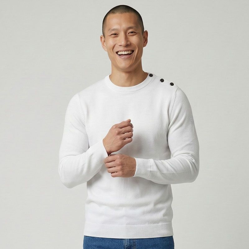 Pull fin col rond coton avec boutons Homme BILL TORNADE