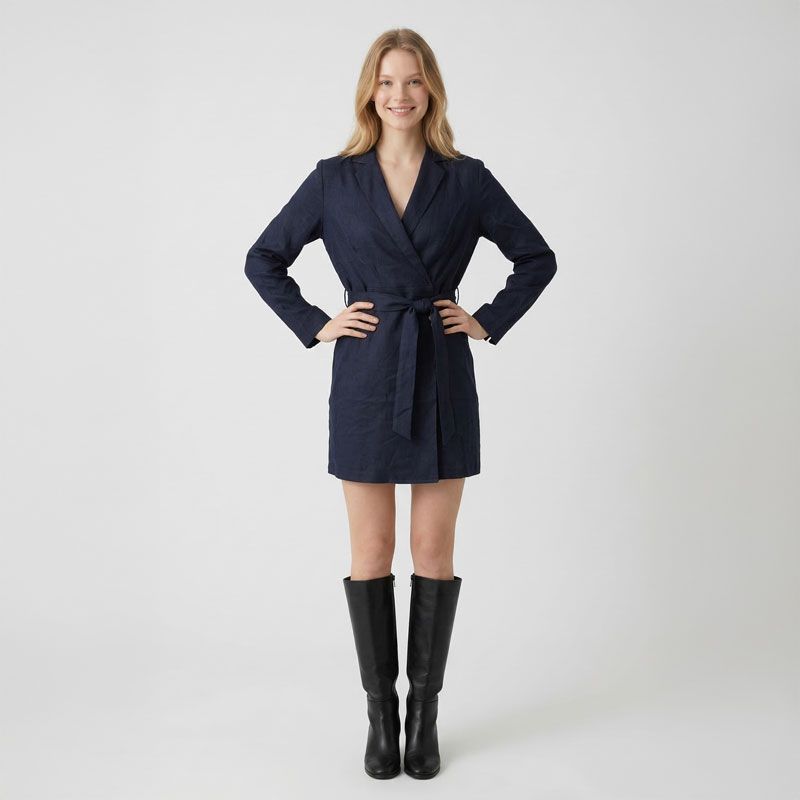 Robe courte col V à nouer avec boutons Femme LA PETITE ETOILE