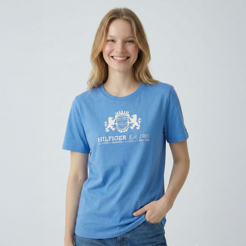 Tee shirt cotelé col rond à boutons Femme TOMMY HILFIGER