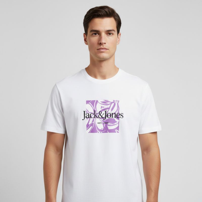 Tee shirt yuki coton imprimé logo col ras de cou Homme JACK & JONES