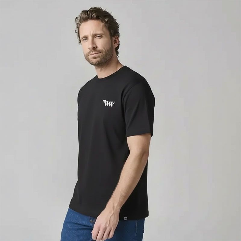 Tee shirt col rond noir log ailé en coton Homme WHEELS AND WAVES