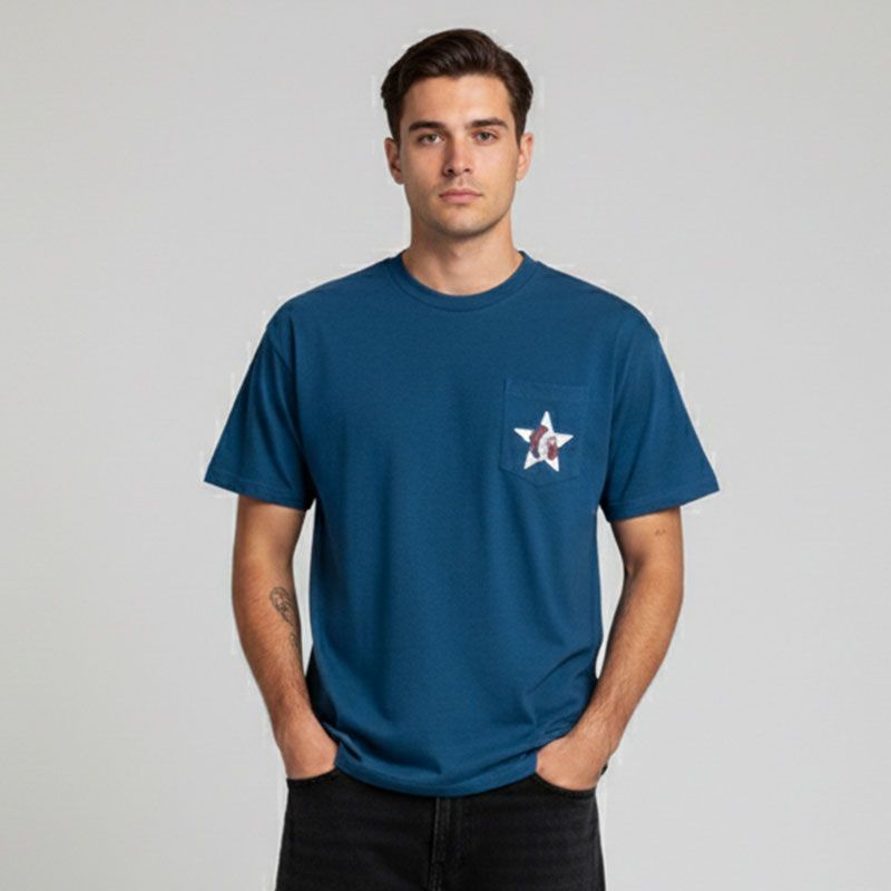 Tee shirt manches courtes imprimé manuscript blau marine Homme WHEELS AND WAVES